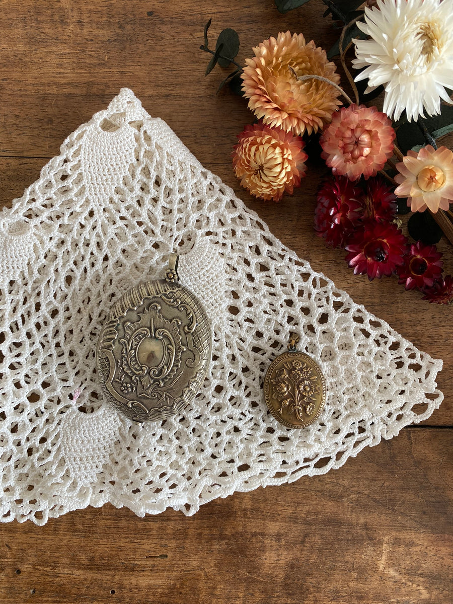 Beau duo de pendentifs vintage en laiton et metal argenté, datant du début du XXème.