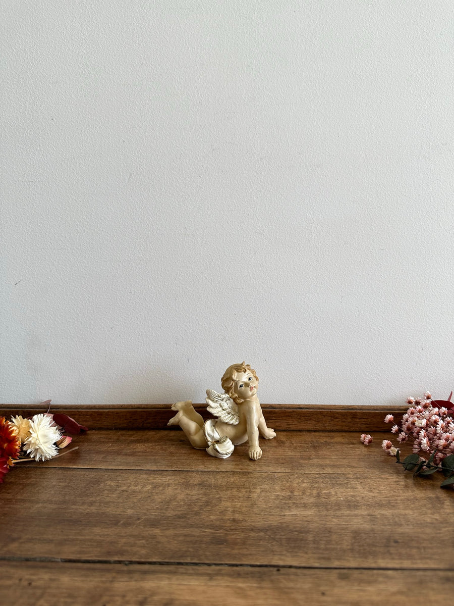Adorable petit angelot en plâtre peint à la main. Estimation années 50.