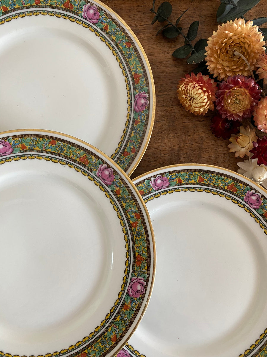 Charmantes petites assiettes à dessert art déco signées E.bourgeois Paris. 21 Rue Drouot. Estimation début XXème. Lot de 5 vendu ensemble