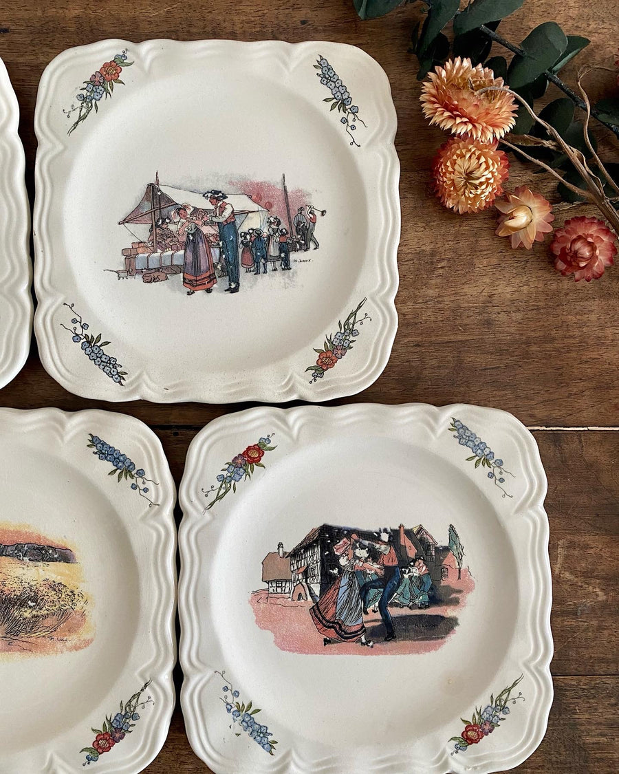 Assiettes à dessert Faïencerie Sarreguemines carrée Alsace