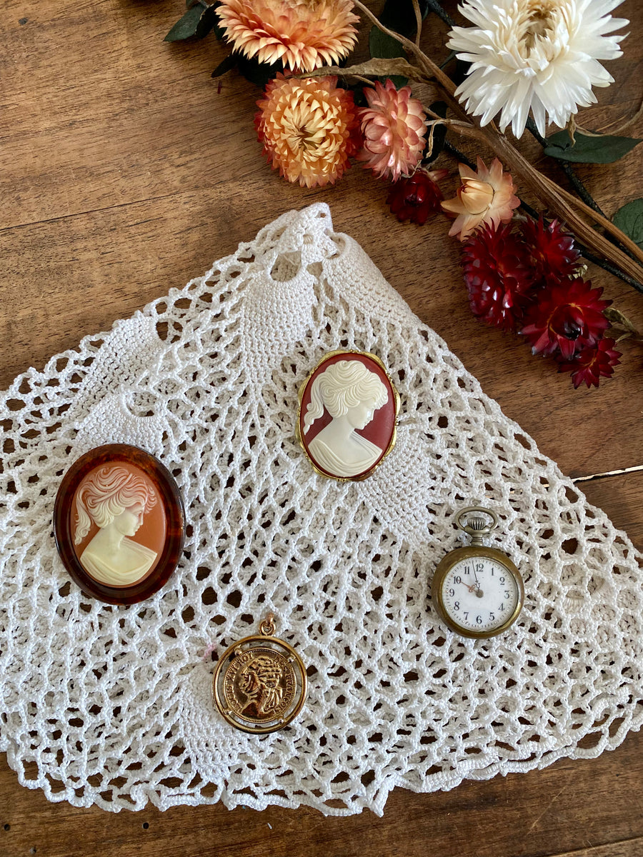 Une broche camée métal doré
