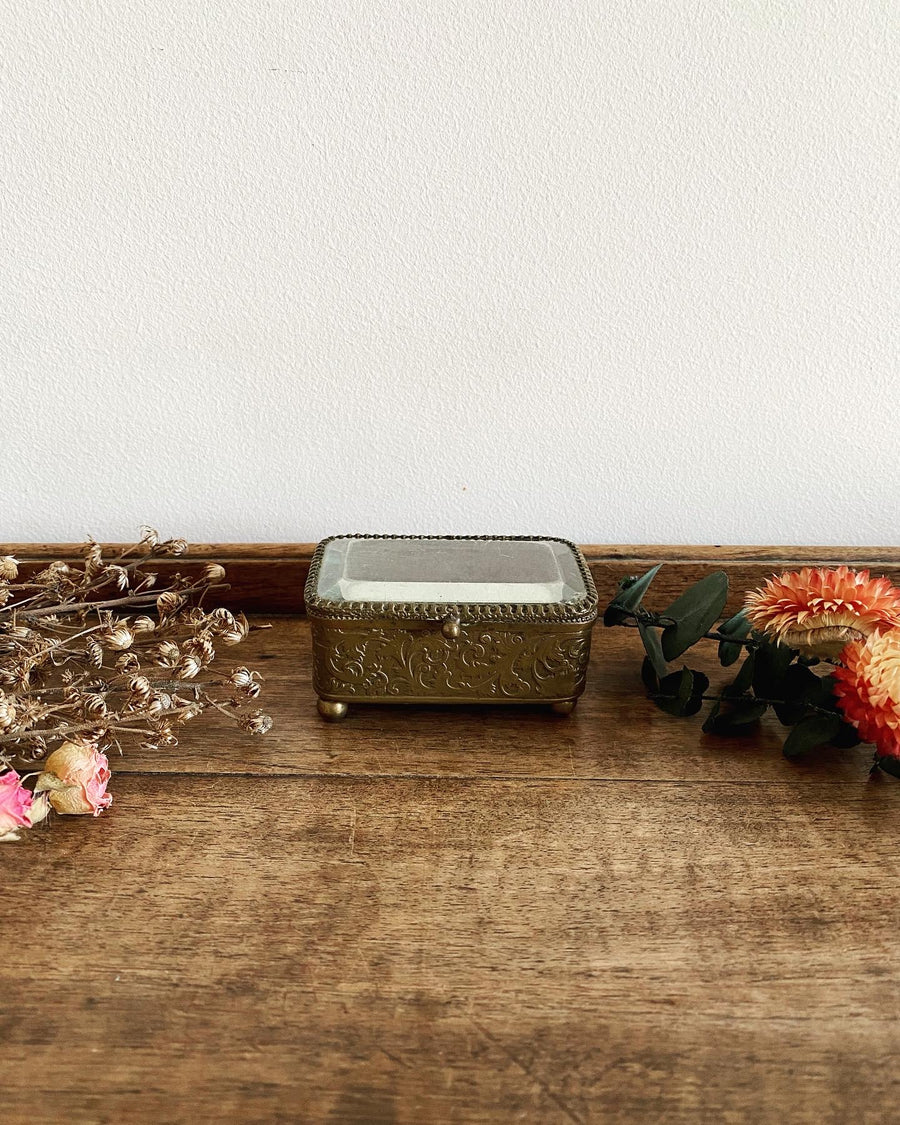 Petite boite très ancienne en métal argenté et verre biseauté, prête à accueillir vos petits trésors (accro sur la vitre)