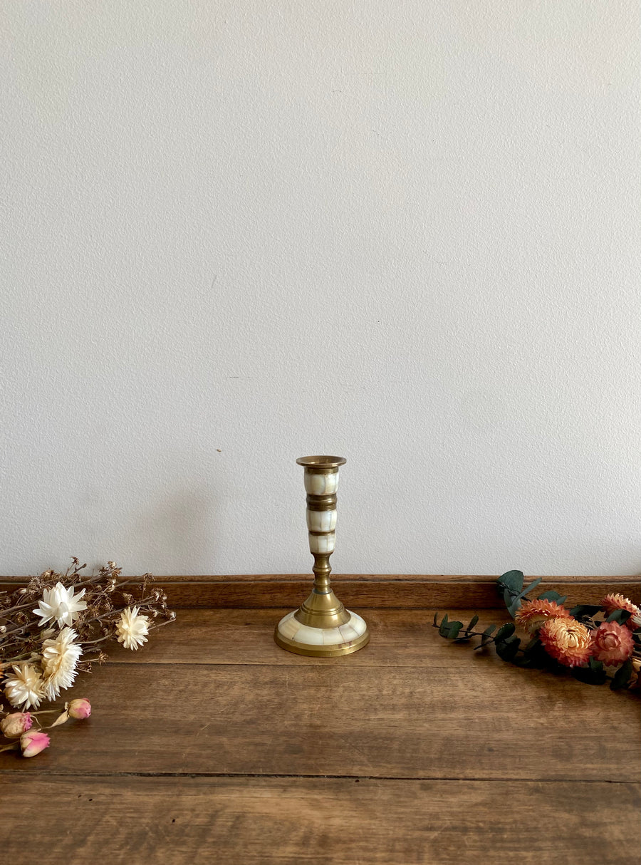 Ravissant petit bougeoir en laiton et facettes nacrées