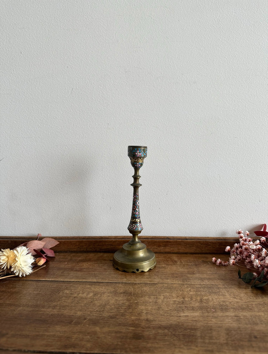 Bougeoir en laiton cloisonné XIX ème