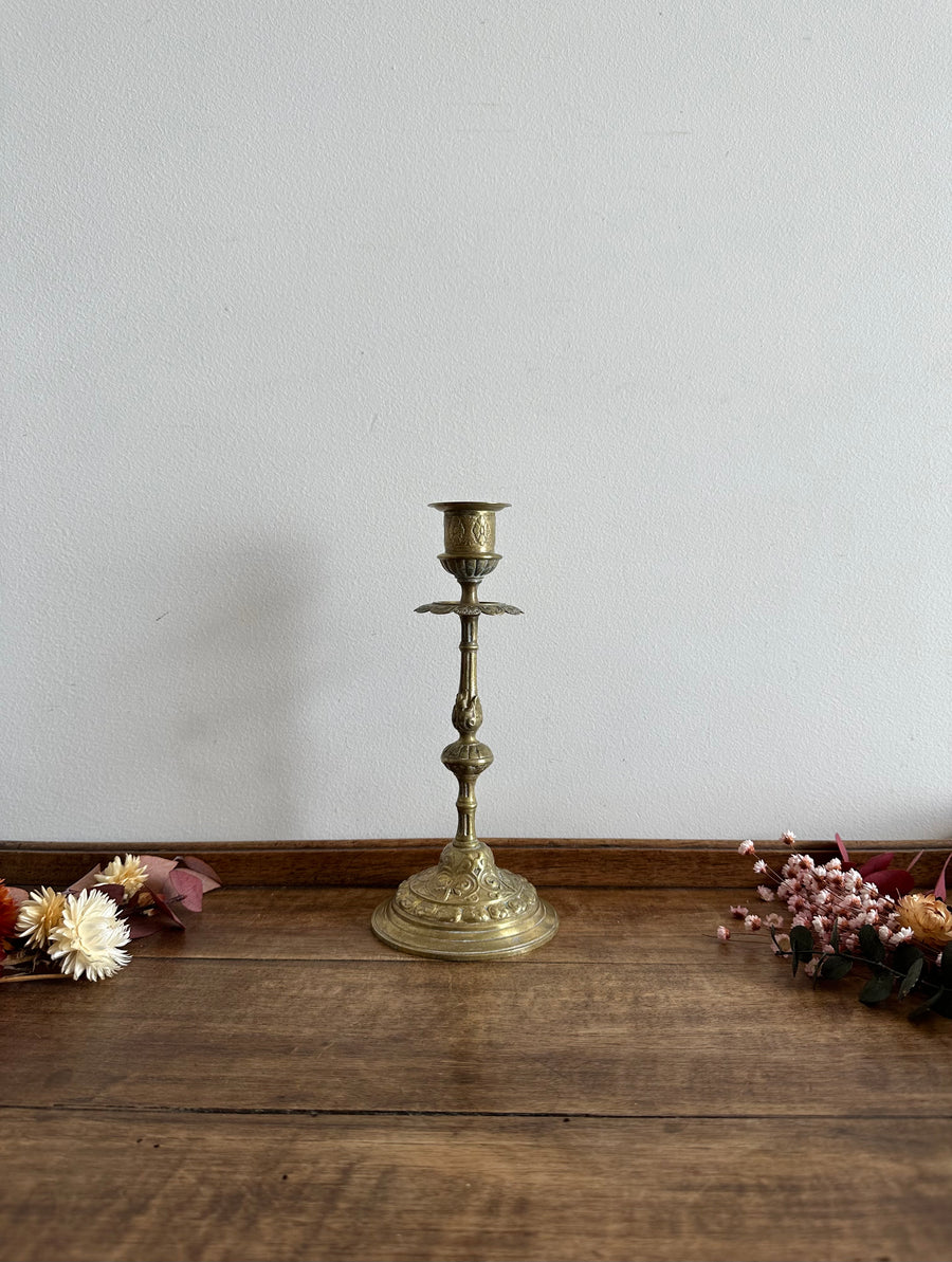 Délicat bougeoir en laiton dentelé ajouré, estimation début XX ème.