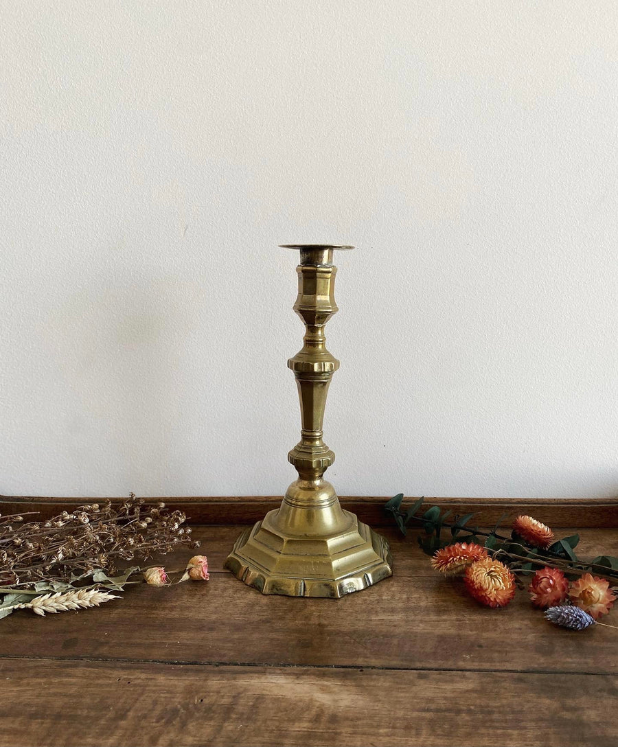 Bougeoir en métal doré avec base octogonale