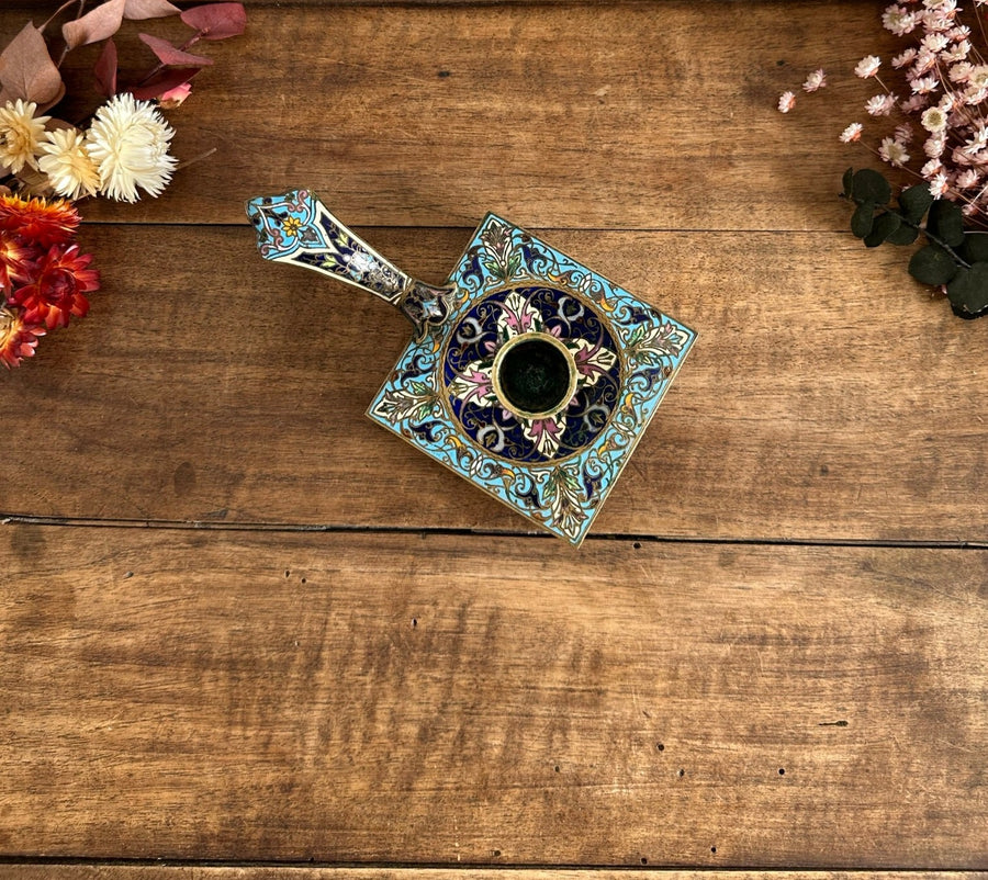 Sublime bougeoir rat de cave datant du 19ème, en bronze cloisonné. Une belle pièce qui sublimera votre intérieur ! Epoque Napoléon III.