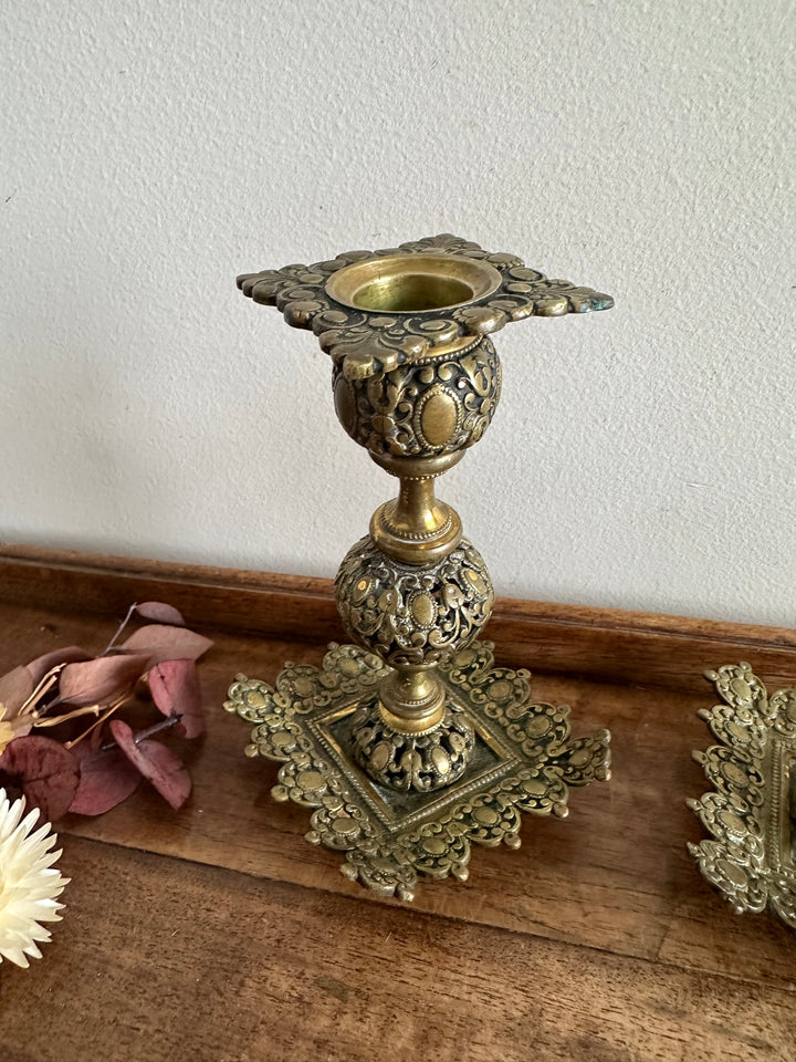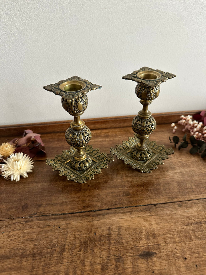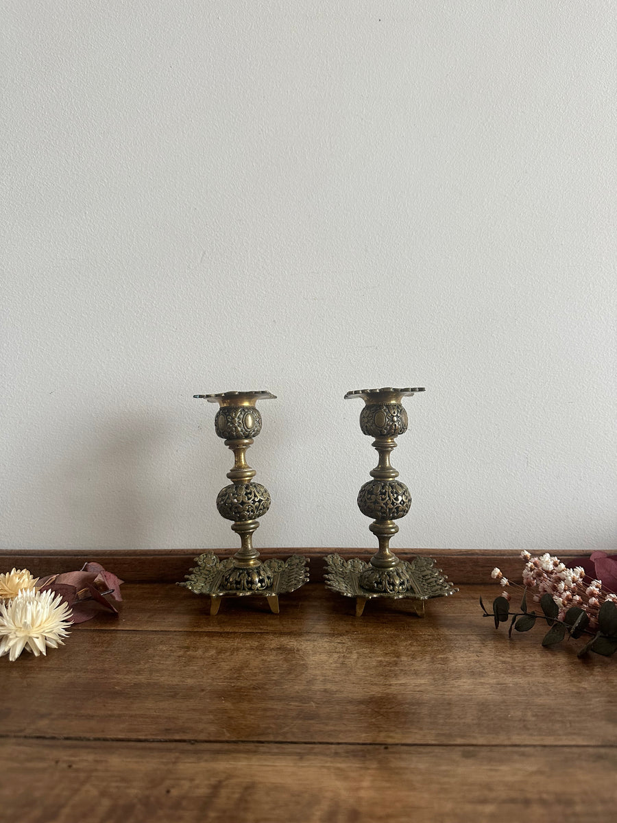 Bougeoirs en bronze ajouré façon dentelle Début XXème