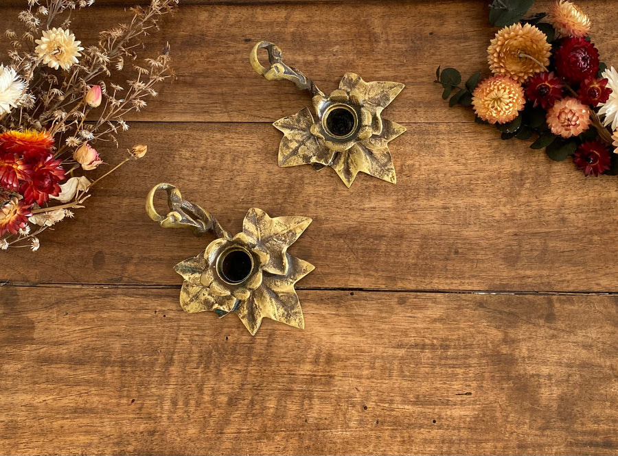 Bougeoirs en laiton rats de cave fleurs