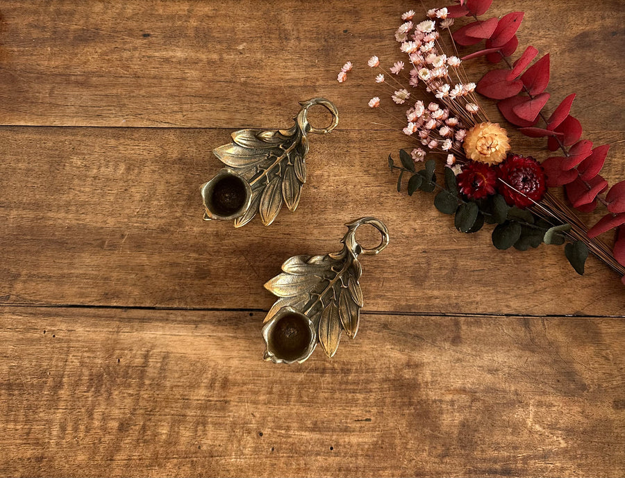 Bougeoirs rats de cave en forme de feuilles de chêne x 2