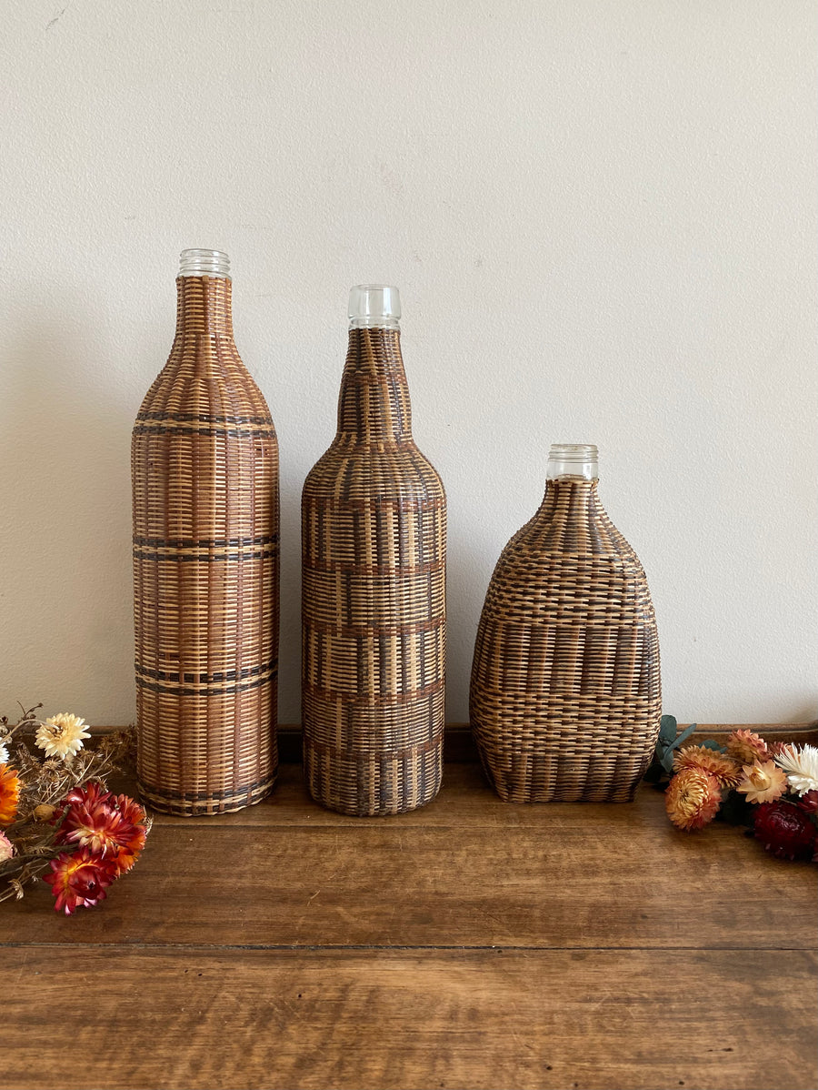 Assortiment de trois jolies bouteilles cannelées artisanales. Vendues séparément.