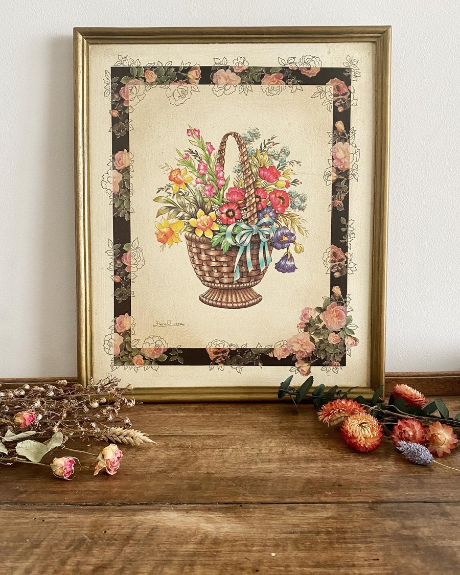 Représentation d’un bouquet de fleurs de l’artiste argentine Elena Olivera, transférée sur son cadre en bois