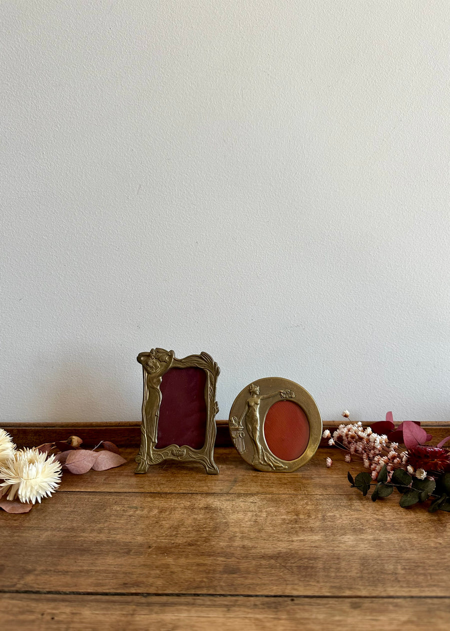 Charmant duo de petits cadres photos en laiton à poser. Dans l'esprit Art Nouveau, estimation années 60. Vendus séparement.