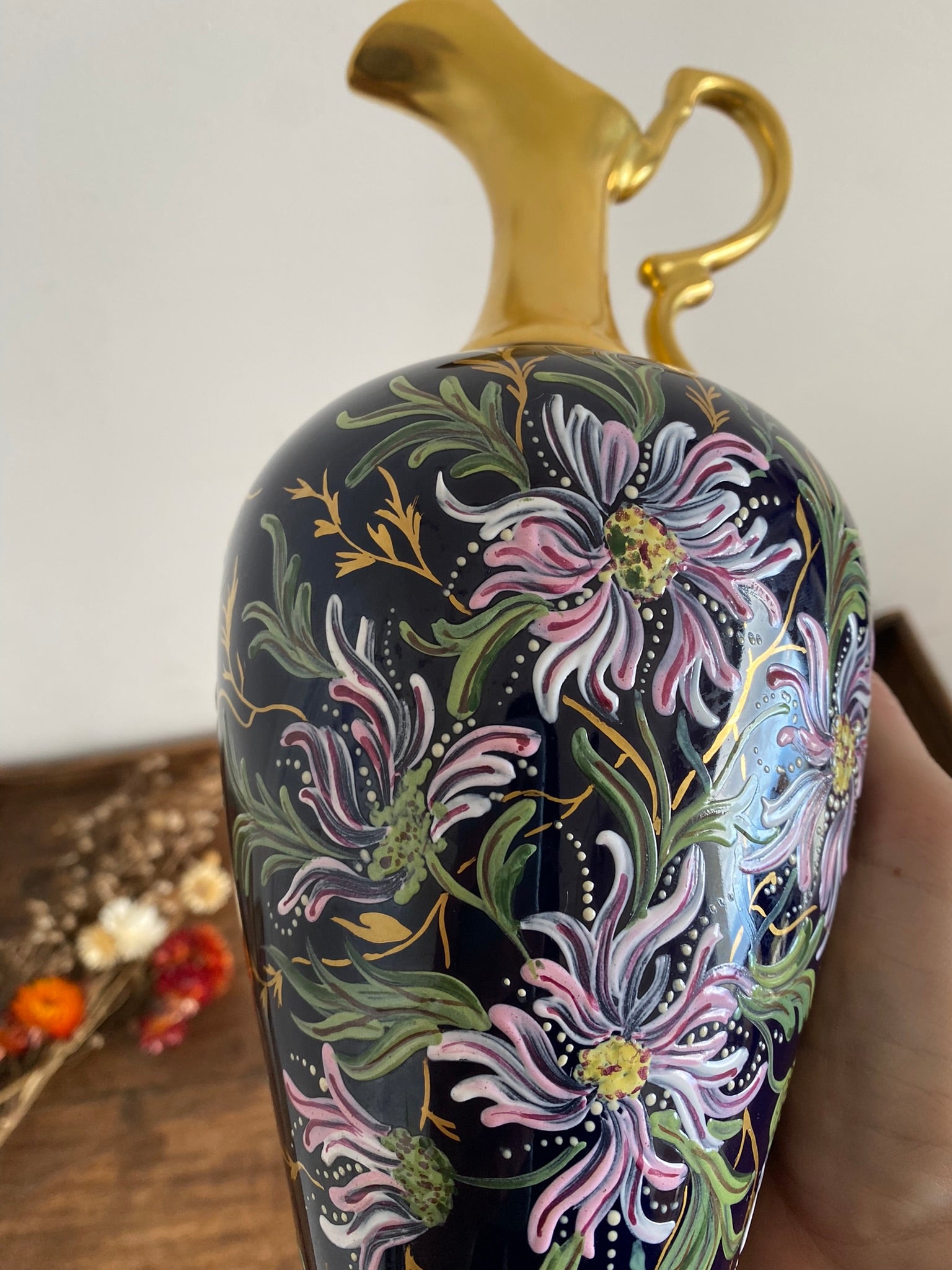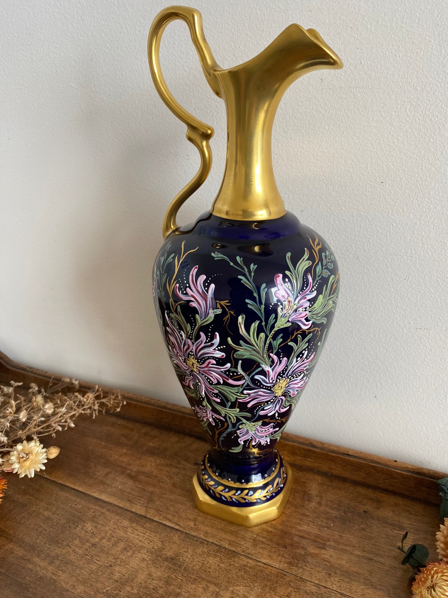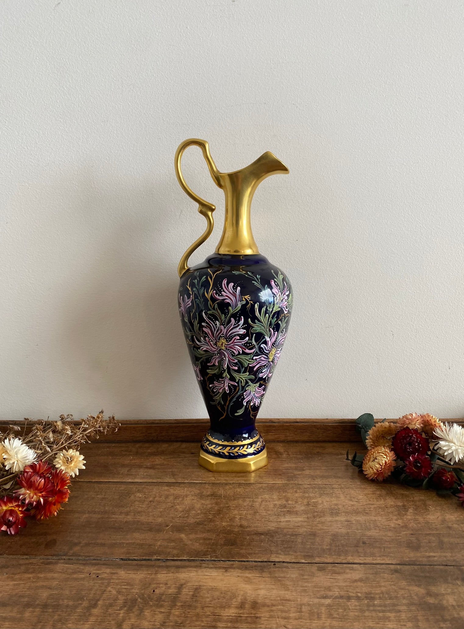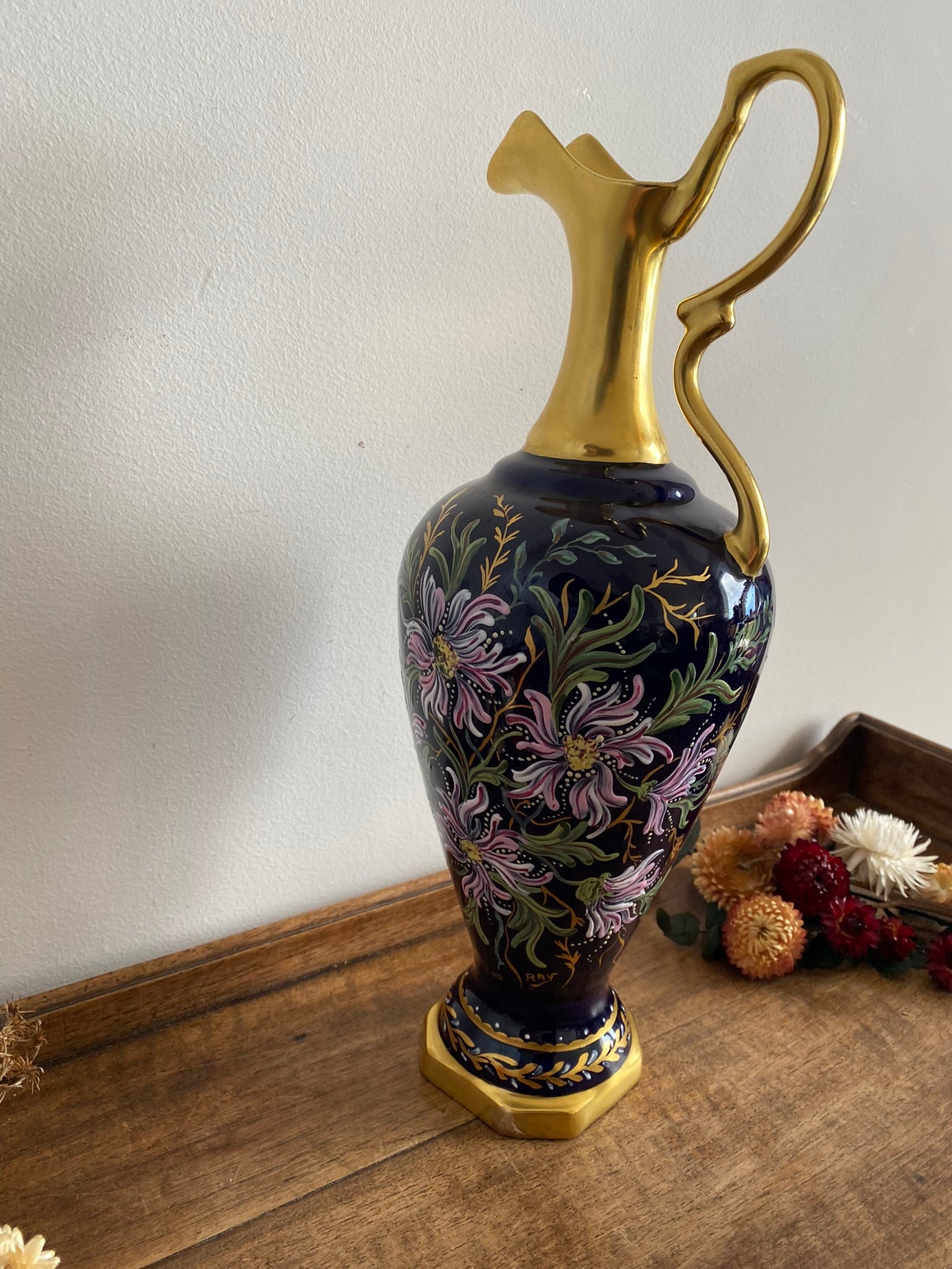 Ravissante carafe en porcelaine signée Limoges, décors main. A noter, une légère imperfection au niveau du socle visible sur les photos.