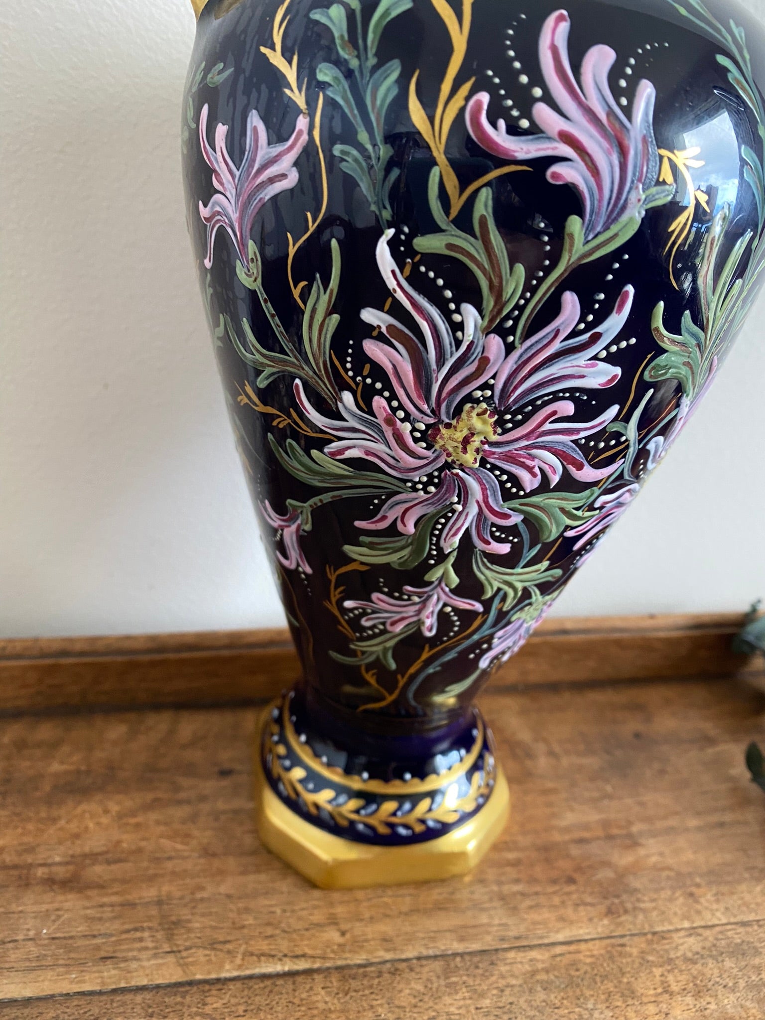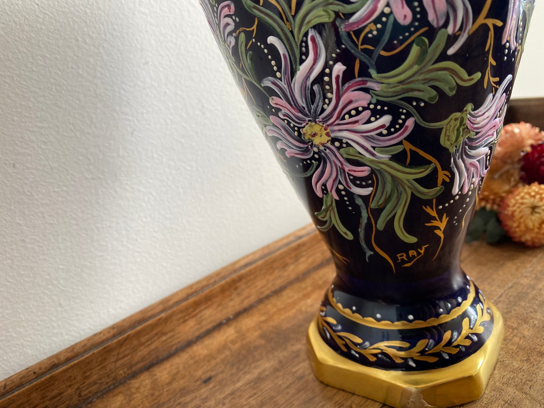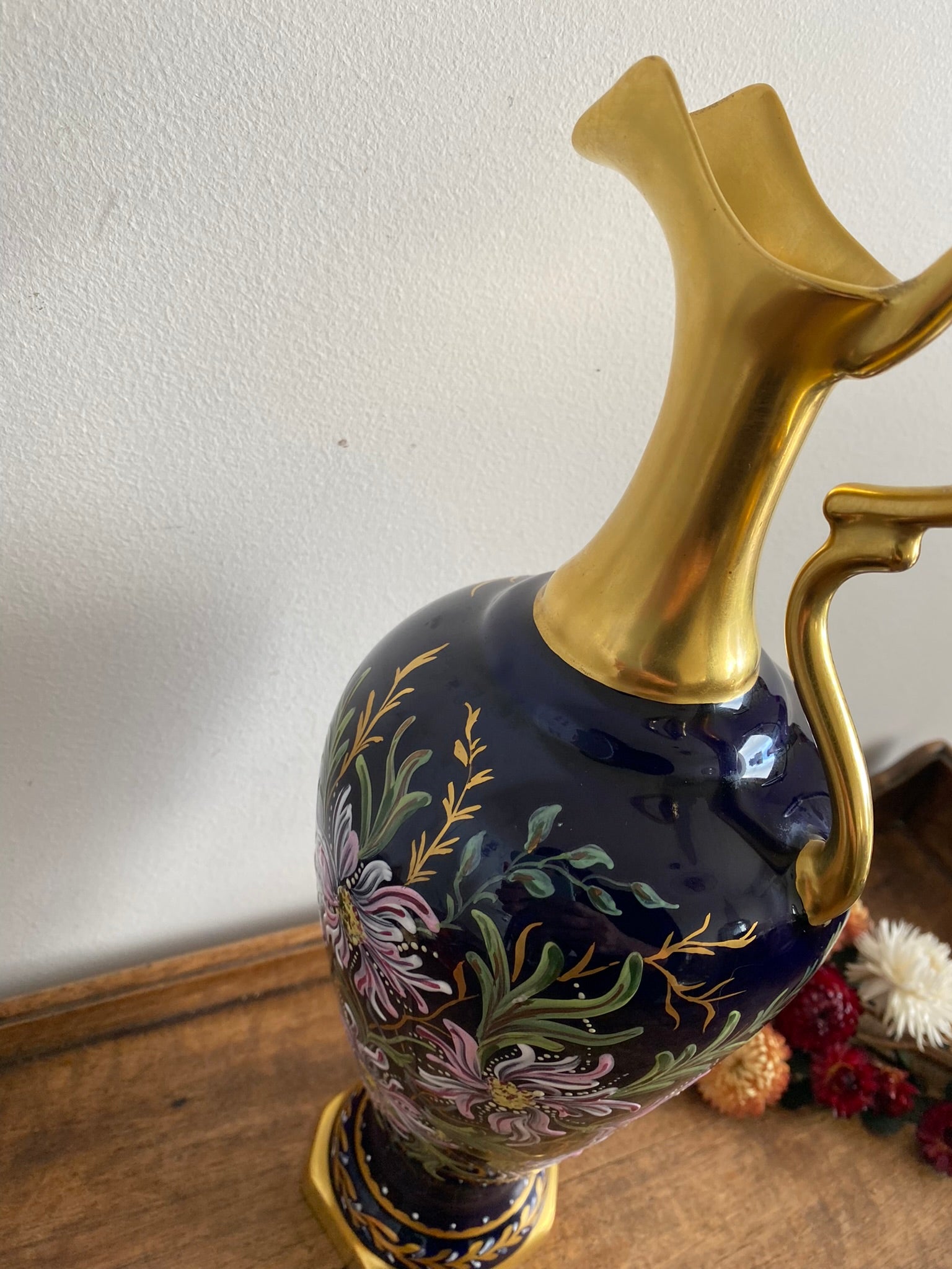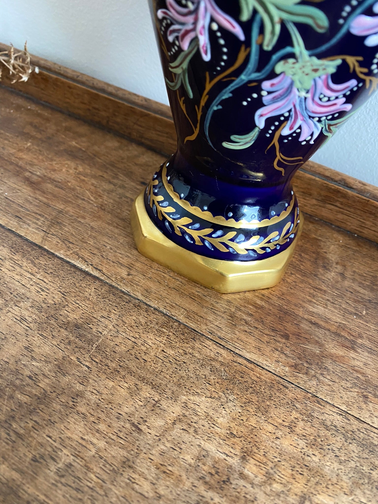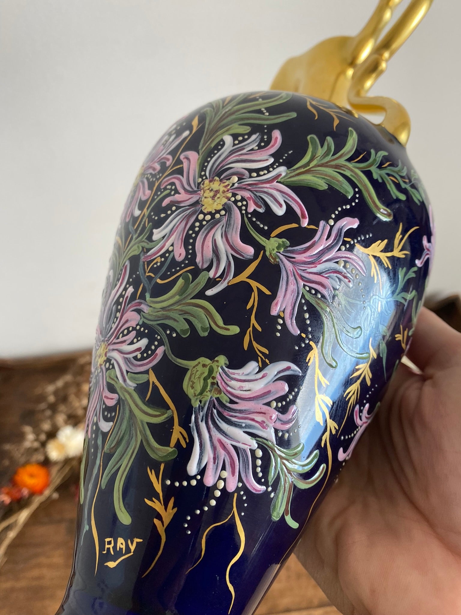Ravissante carafe en porcelaine signée Limoges, décors main. A noter, une légère imperfection au niveau du socle visible sur les photos.