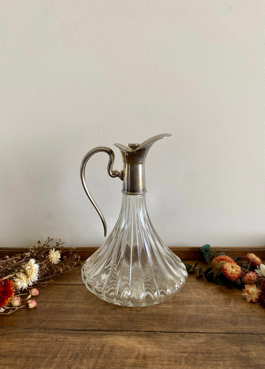 Carafe décanteur en verre à base large avec anse et goulot argentés