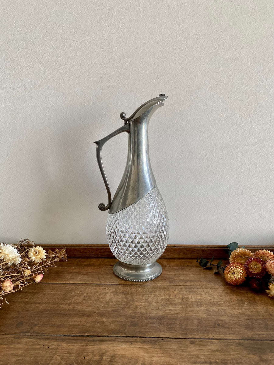 Carafe en verre ciselé recouverte d'étain