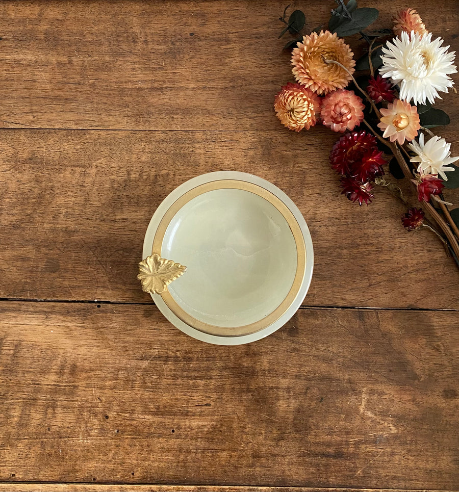 Cendrier en onyx verte cerclé de doré avec reposoir en petite feuille