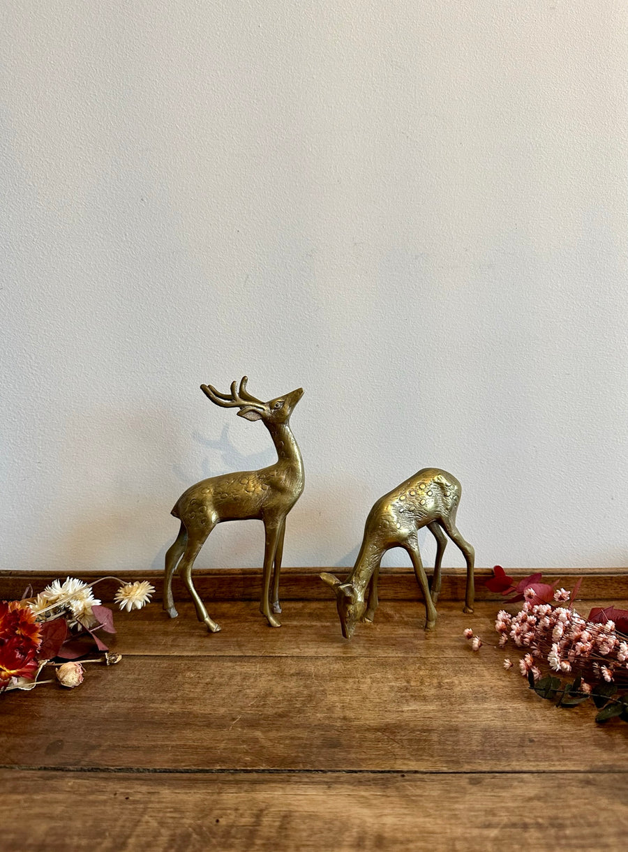 Joli couple cerf et biche en laiton doré sculpté, estimation années 70.