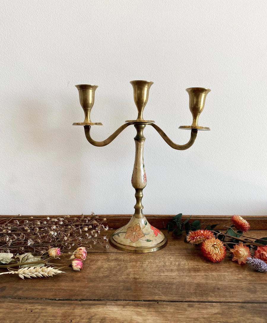 Ravissant chandelier en laiton émaillé à décor floral.