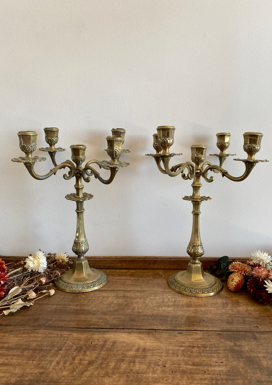 Lot de deux élégants chandeliers en laiton doré, un peu tordus et imparfaits ! De vraies beautés.
