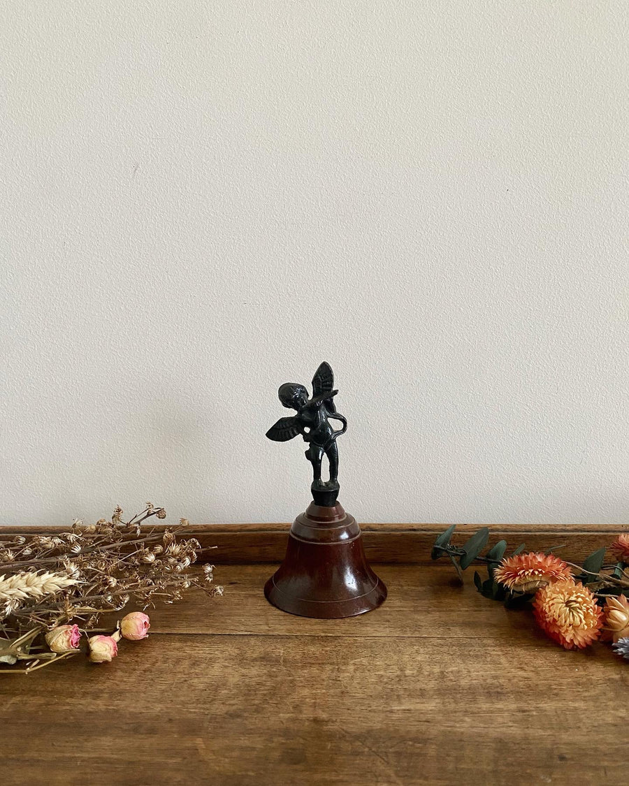 Jolie petite clochette de table en bronze originale avec manche angelot.