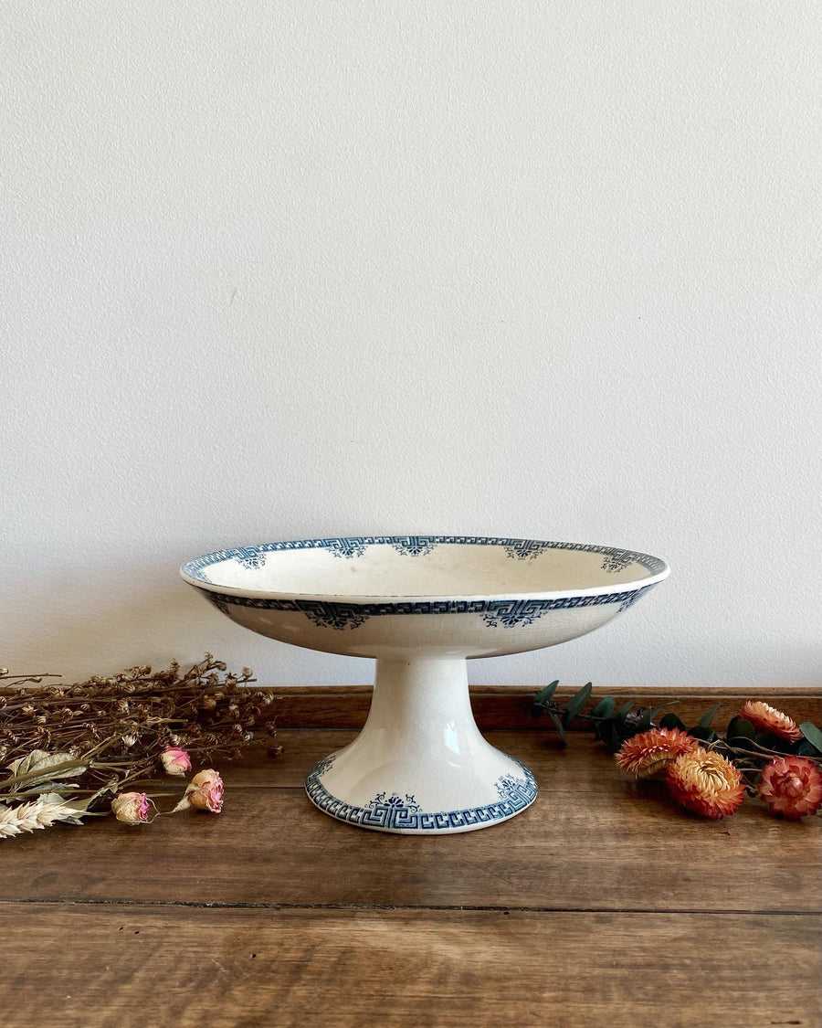 Très ancien compotier sur pied en faïence modèle Athènes pour présenter des desserts variés ou des fruits, ou pourquoi pas des bijoux.