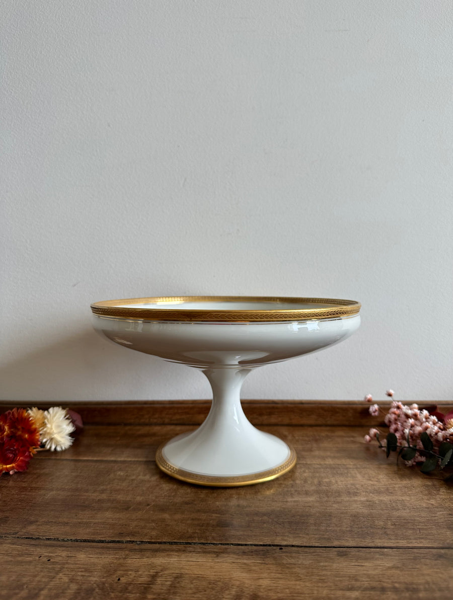 Joli compotier en porcelaine fine rehaussé d'un liseré d'or. Manufacture E. Bourgeois Paris. 21. rue Drouot. Estimation années 1900.