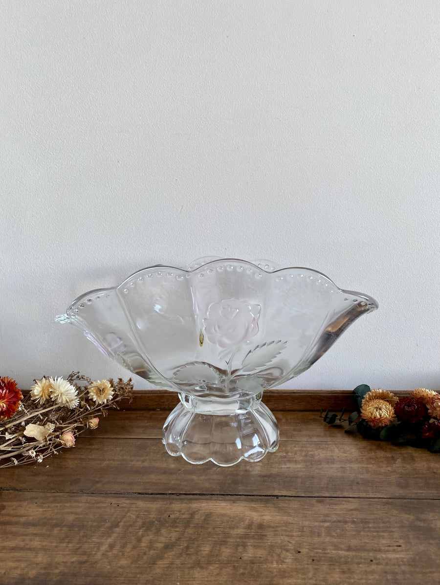 Corbeille de fruits en cristal de bohème motifs roses en verre givré