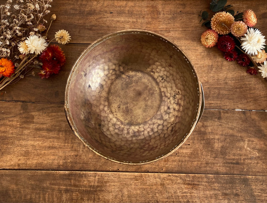 Ravissante petite corbeille en laiton et cuivre martelé avec sa anse. Objet ancien début XXème