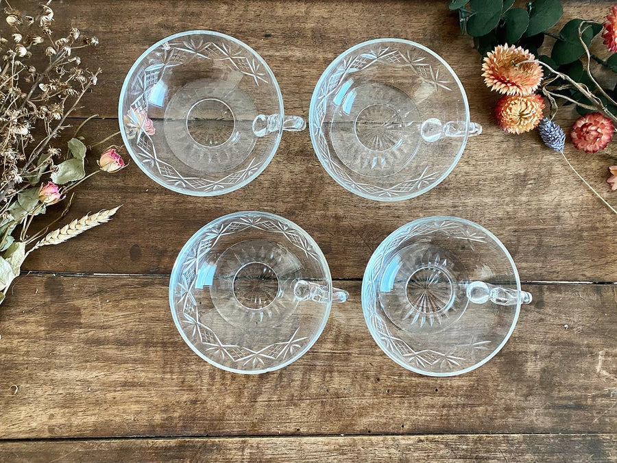 Lot de 6 belles coupelles anciennes à anse en cristal à l'allure raffinée. Idéales pour le champagne ou bien pour déguster une salade de fruits, une crème glacée ou autre gourmandise de votre choix.