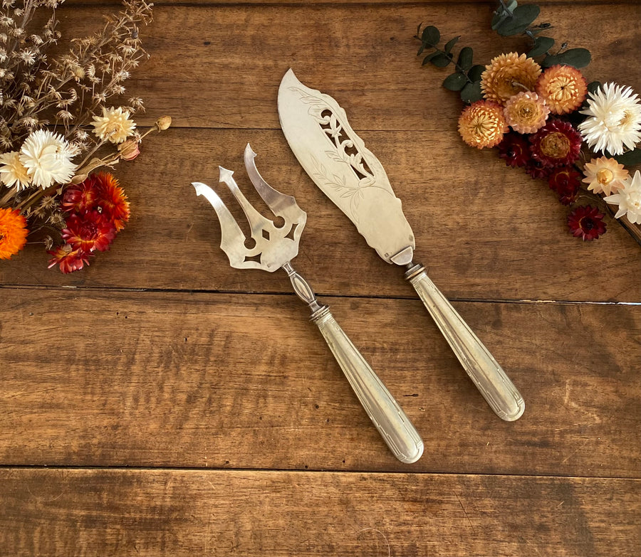Couteau et fourchette de service en métal argenté