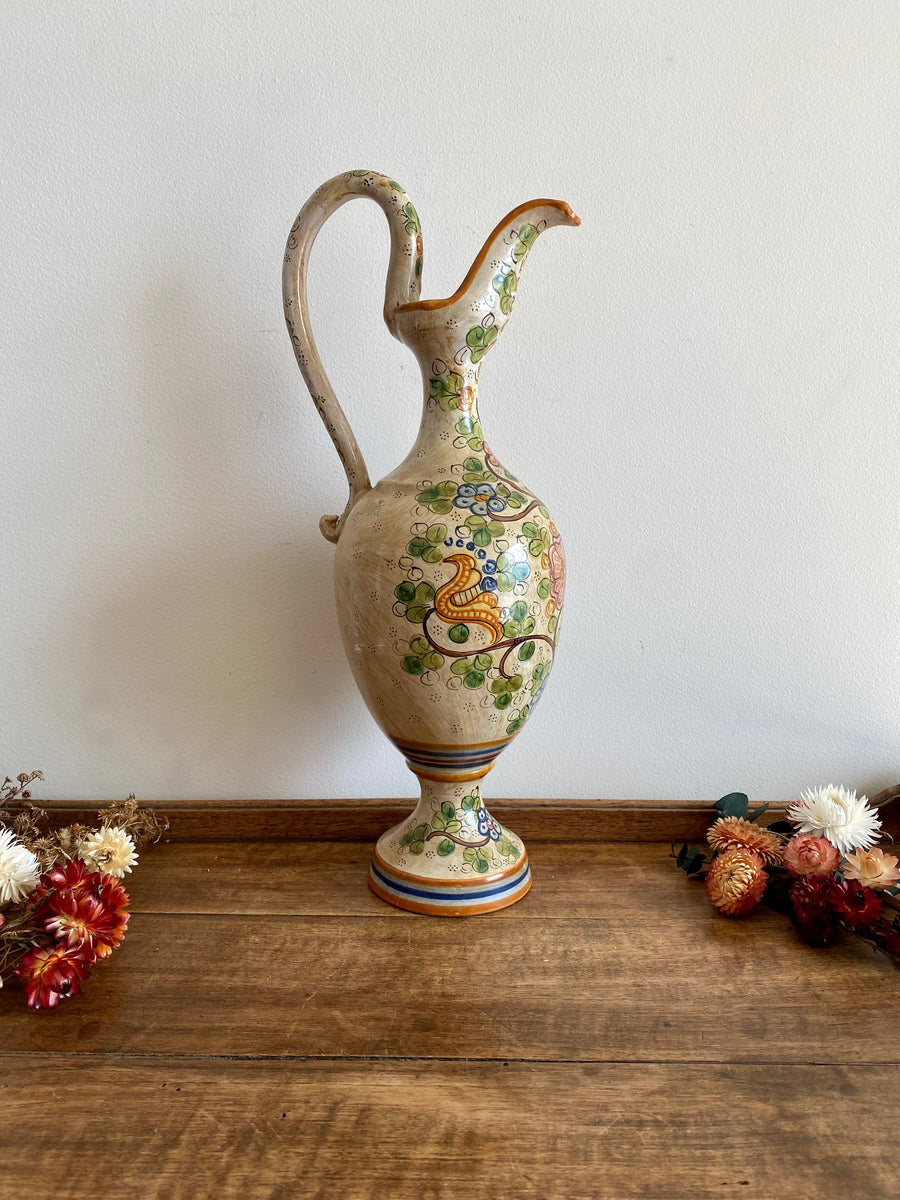 Belle cruche en faïence avec motifs fleuris. Peinte à la main. L.A.E.M Orvieto Dipinto A Mano