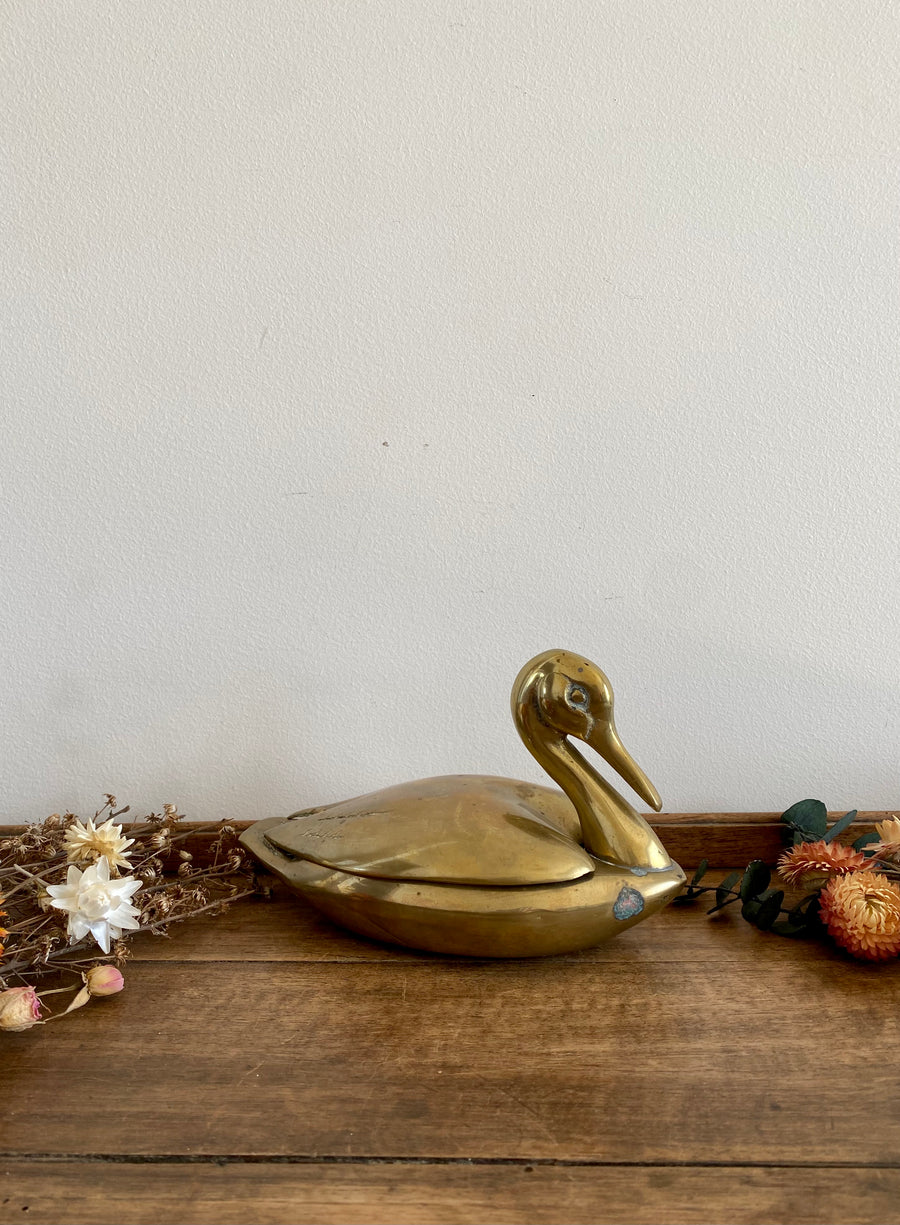 Joli cygne en laiton ancien avec son couvercle et sa belle patine.