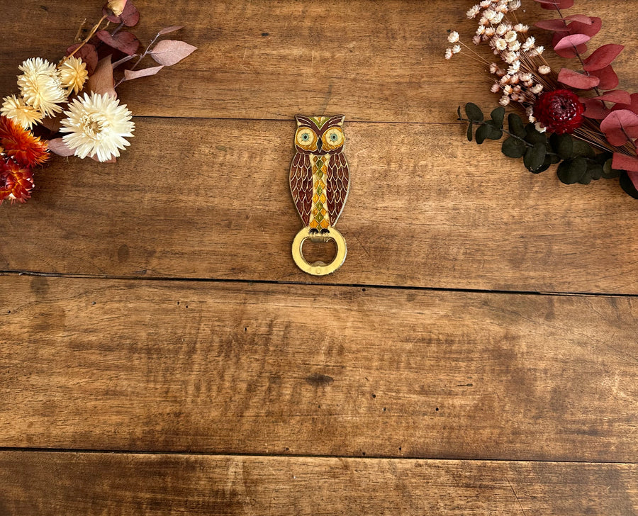 Adorable petit décapsuleur en bronze en forme de hibou. Bronze émaillé. Estimation années 70