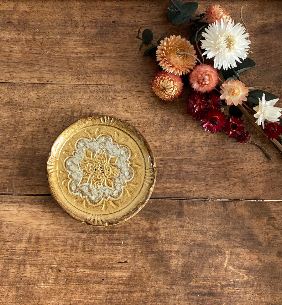 Elégant sous bouteille style florentin, aux jolis tons dorés et beige.