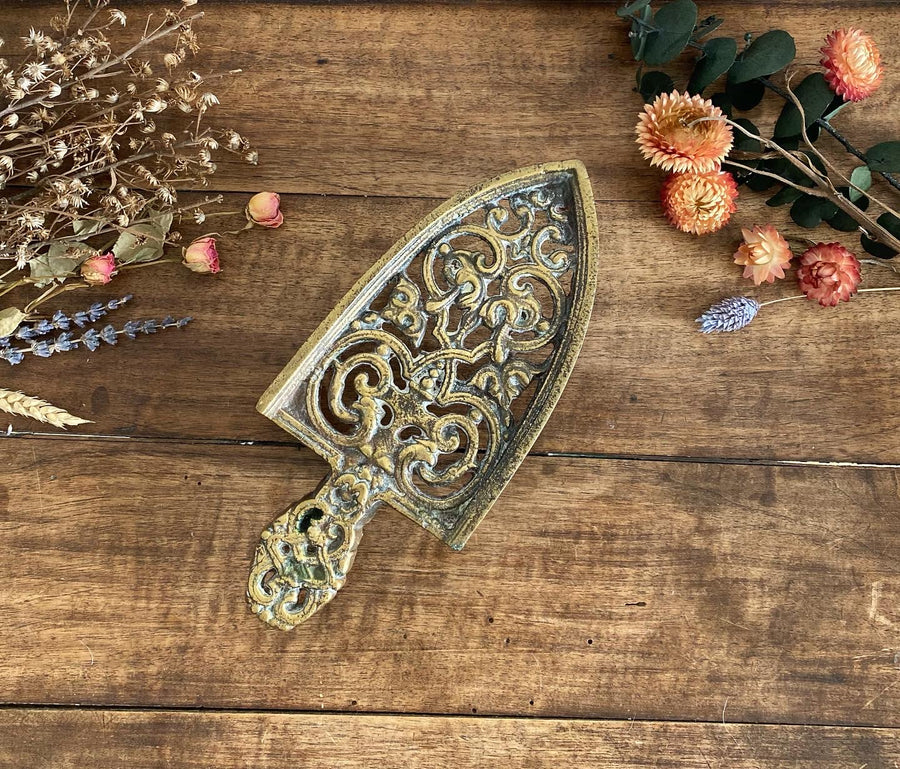 Ravissant petit repose fer à repasser travaillé en fonte et laiton. Peut aussi être réutilisé comme dessous de plat