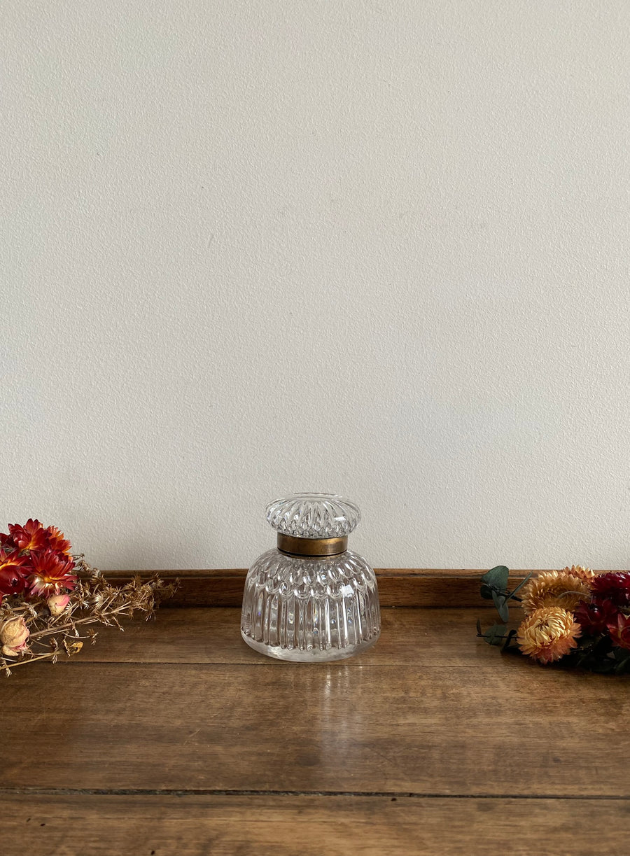 Ravissant petit encrier en cristal et bronze. On adore ses dessins et ses jolies formes rondes moulées. A noter une discrète rayure à l'arrière et un petit accident sous l'encrier visibles sur les photos. Objet ancien présentant des traces du temps.