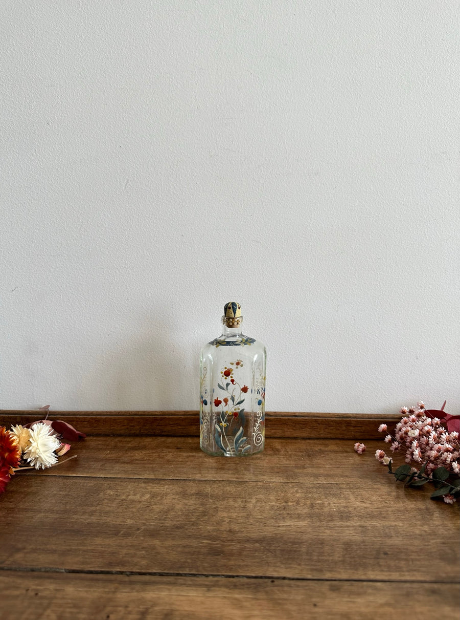 Mignon petit flacon très ancien, décoré main avec son mini bouchon en liège d'origine. Estimation début XXème.