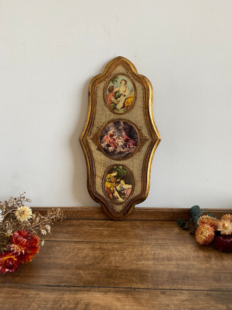 Belle icône sur bois doré, de style florentin. Composée de 3 médaillons représentant des scènes d'époque