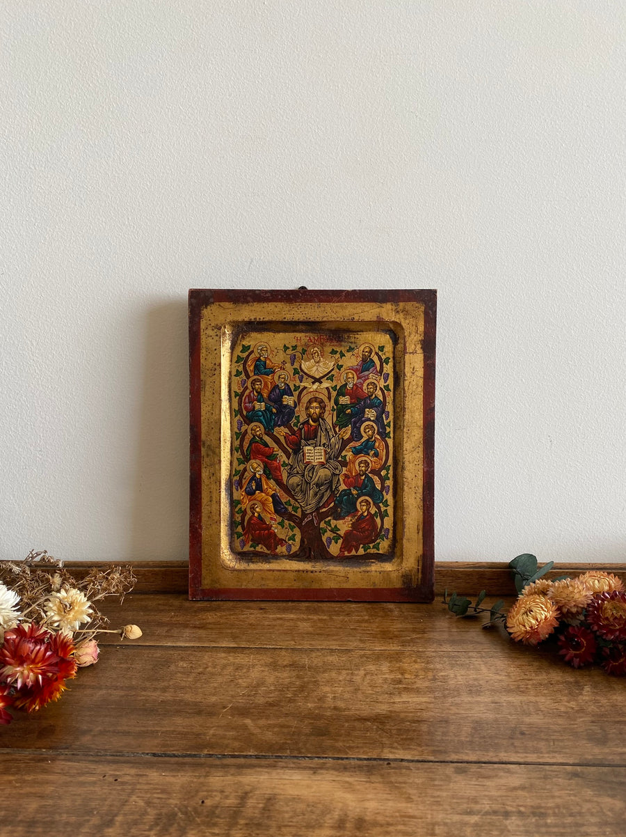 Belle icône peinte à la main et rehaussée à la feuille d'or. Art Byzantin certifié.