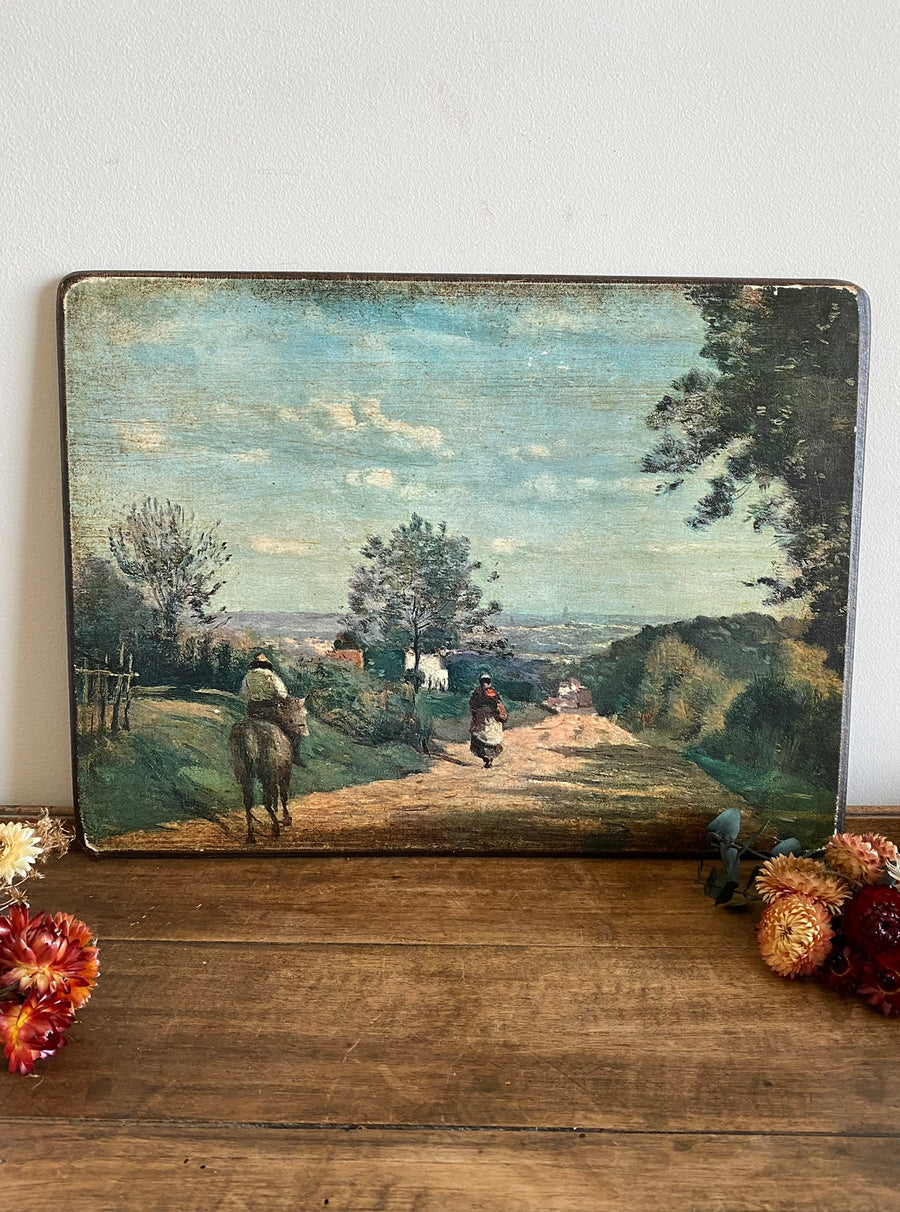 Belle illustration d'une route de campagne sous un beau ciel bleu. D'après un tableau de J.B.C Corot (1796-1845), La strada di Sèvres - Le chemin de Sèvres. Louvre, Paris