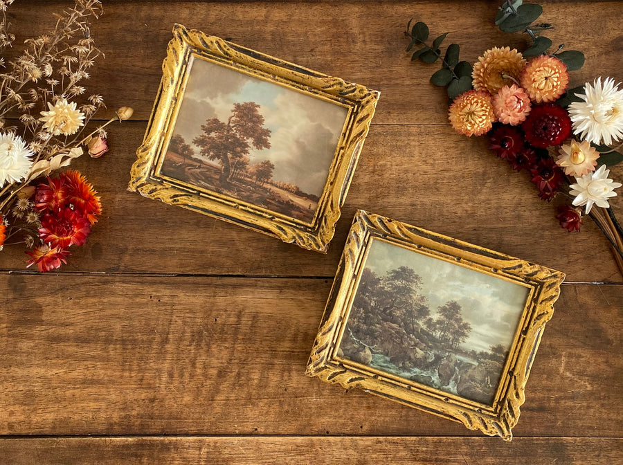 Impression sur tissu représentation des oeuvres de Jacob van Ruisdael dans leurs jolis cadres dorés. Vendus séparément.