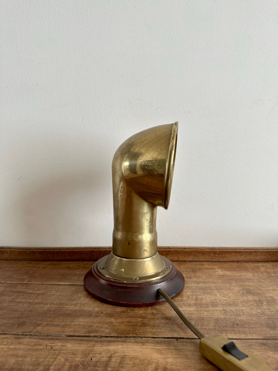 Lampe à poser en laiton type bateau socle en bois