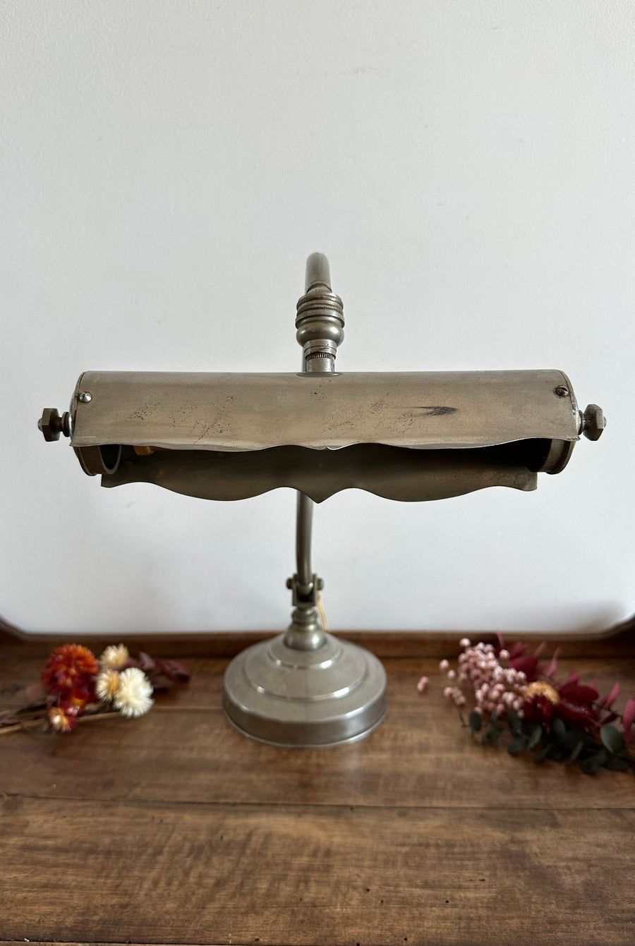 Coup de coeur pour cette ancienne lampe dite de piano en métal des années 30. Très belle patine, objet déco par excellence ! De petites traces du temps visibles sur les photos.