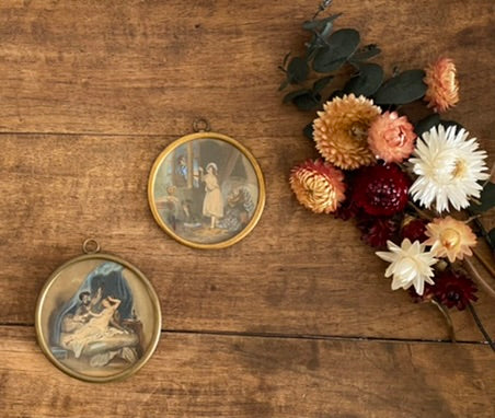 Médaillons scènes d'époque ronds dorés