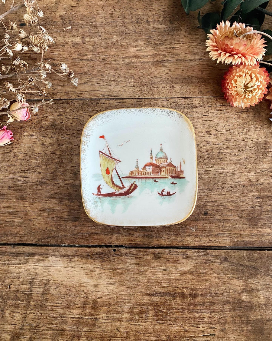 ▫️Mini assiette carrée aux bords arrondis représentant Venise et ses bateaux Bavaria 59 Handgemalt