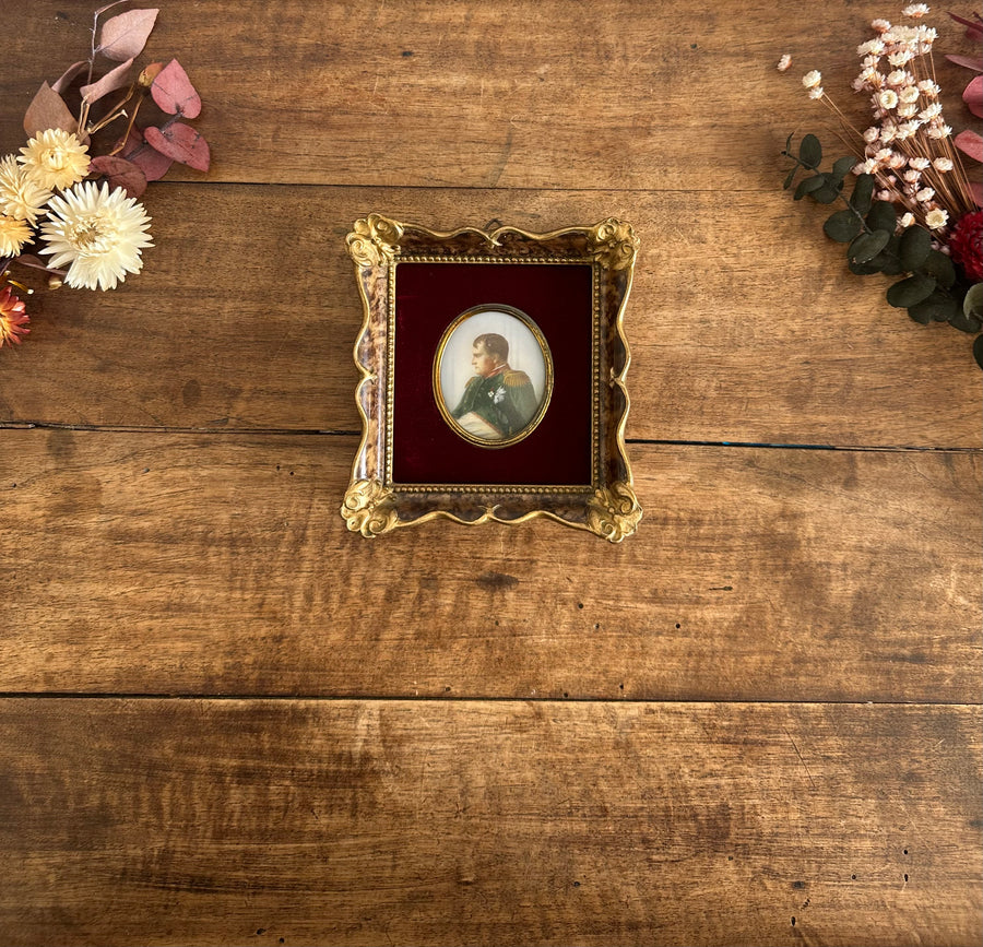 Miniature sur porcelaine Empereur Napoléon bonaparte sur velours rouge