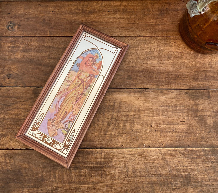 Joli petit cadre Miroir Vintage style Art Nouveau dans les tons orangés, inspiration Mucha, datant des années 1970-1980
