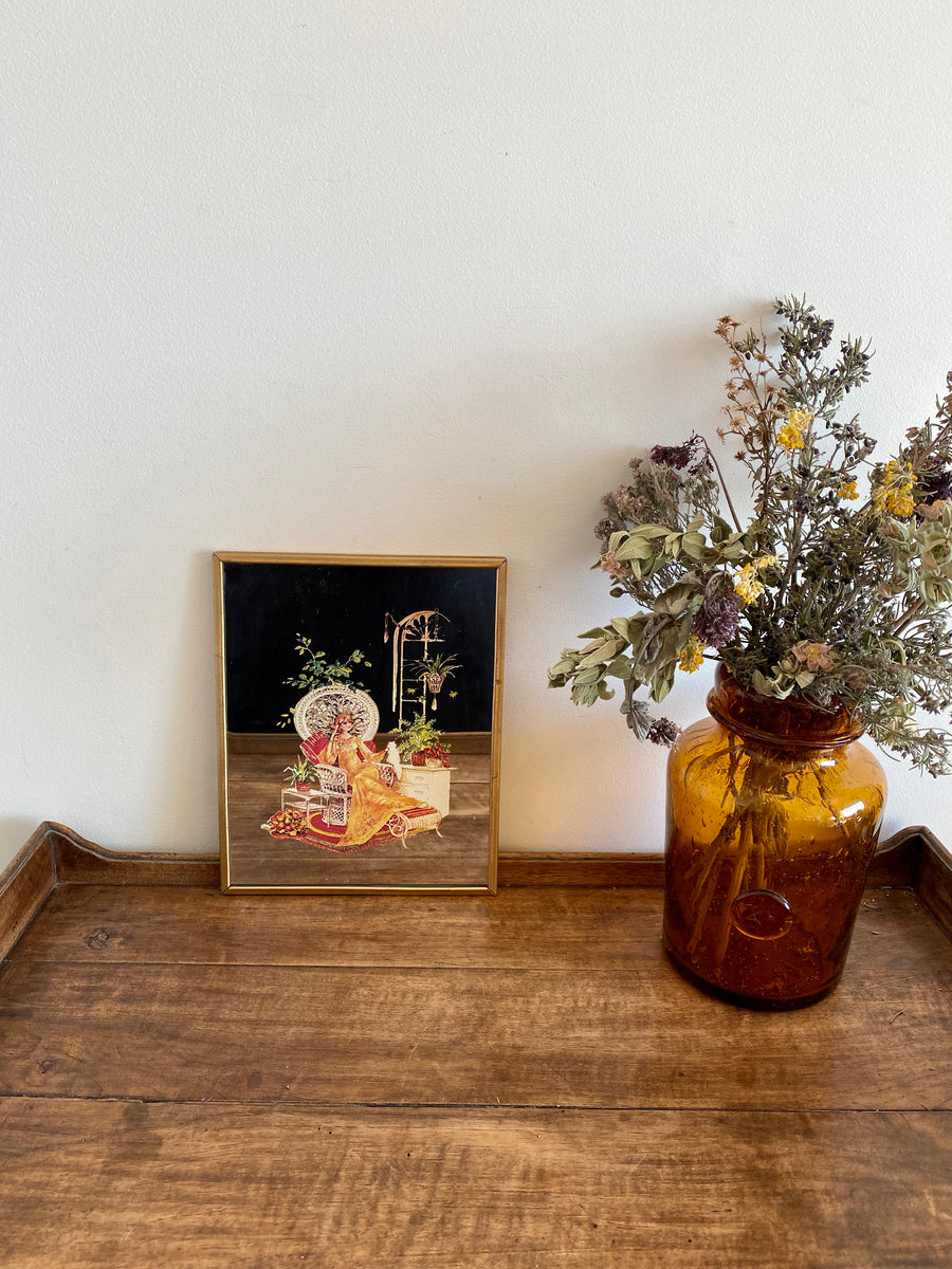 Joli cadre miroir décoratif représentant une jeune fille dans son fauteuil Emmanuelle.